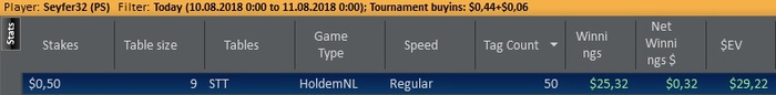 Seyfer32 @ 6.8.2018 Пятница, суббота и воскресенье стали внеплановыми выходными, в эти дни должен был сыграть 150 снг. Сейчас жара, тяжело играть больше 100 турниров, на следующей неделе спадет жара и разобью эти 150 на 5 будних дней по 30 снг.