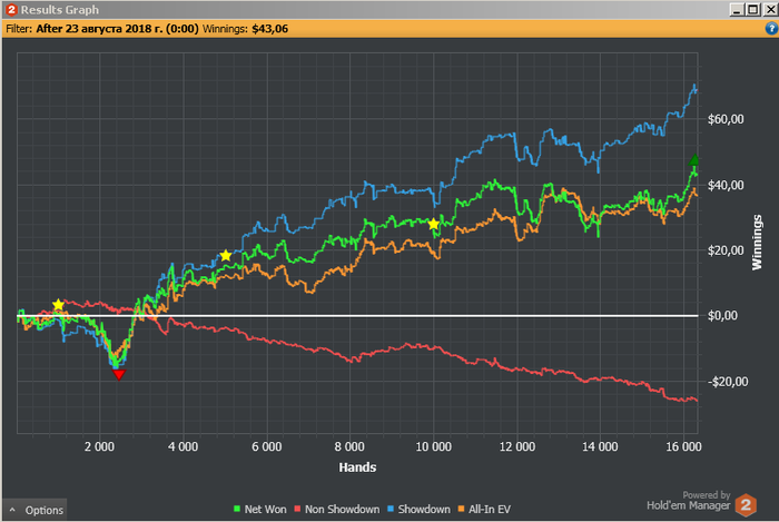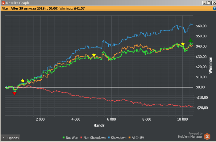 Никак не могу наладить игру, плюс доезды на ривере фишам, просто какие то невероятные, и в итоге почти 23 к рук в маленький плюс. Надеюсь дальше резы будут гораздо лучше.