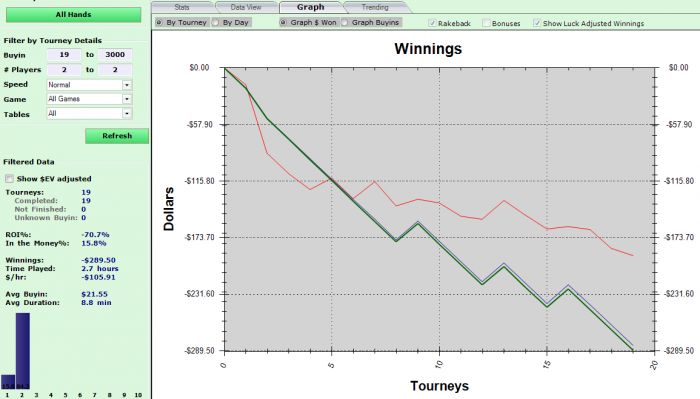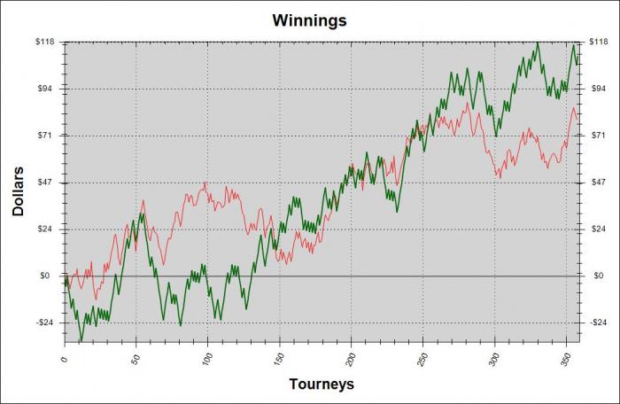 1) научиться играть вдумчиво 2 стола,я готов потратить еще 50 турниров для этого и отложить подъем на 10ки, и попортить себе графики с результатами это и будет пока моей целью, на ближайшее вермя. по скольку у меня есть основная работа на которой я пропадаю большую часть времени дня, буду играть не так много как хотелось бы. но для того я и задепозитил, что бы хорошенько оторваться в свободное время