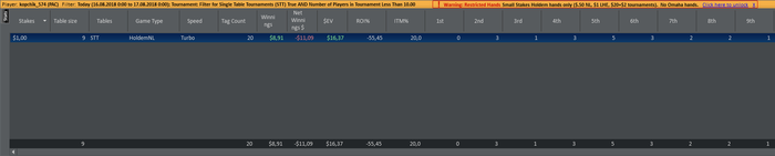 kopchik_574, насчет советов которые понадовал я и дают другие.Ты можешь их проверить, и верить или не верить решать тебе.Даже лучше проверь и эксперементируй на баттоне. Попробуй открывать 50%. Попробуй открывать еще больше, если тебе будет не комфортно, заузь рэндж. Это же форум надают тебе советов. Причем один совет будет противоречить другому. Так что проверь, на практике и для этого не нужна сумашедшая выборка, сыграл 1 сессию и готово. Просто смотри уверенно, ты себя чувствуешь или нет.