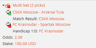 2) Краснодар - Спартак Фора 1 +1
