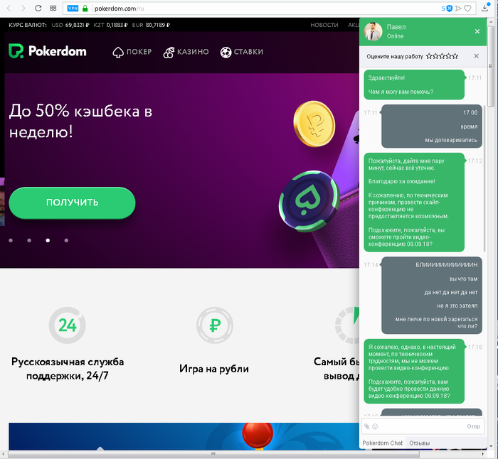 Дело в том, что я сделал вывод денежных средств, его списали со счета в Покер Дом, но он не отображается в истории и на карту мне не зачислен. Поддержка говорит, что сторонняя компания так долго процесит, а они в свою очередь платеж выполнили. Не переживайте денежные средства поступят в течении 7 дней. А я собственно за это и не переживаю, я за сроки вывода переживаю теперь. Т.е. теперь что получается ? что Покер Дом не является самым быстрым румом по выводу, а даже наоборот? Мне старзы в течении часа-трех отправляют. Ранее покер дом в течении 15 минут отправлял денежные средства. Но самое интересное, почему в истории платежей нет записи? Если покер дом стал выводить неделю, То об этом нужно сообщить на сайте, тематических форумах и через нас блогеров на стримах это нужно осветить.
