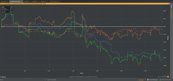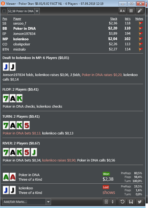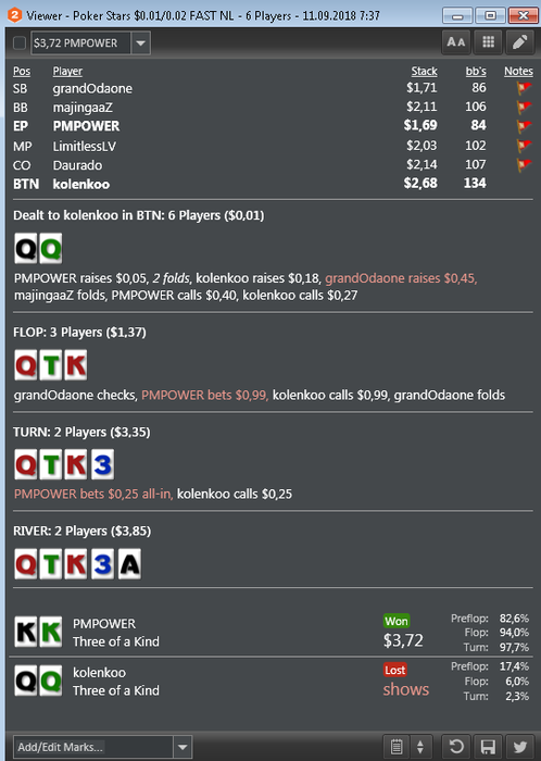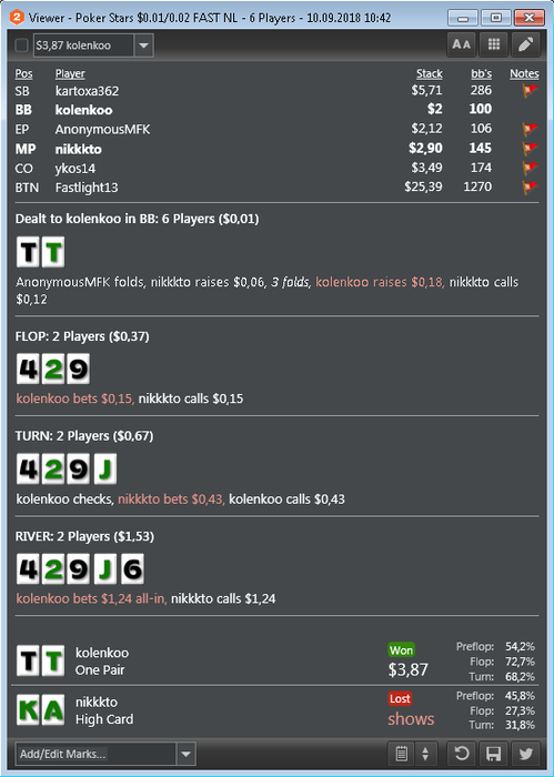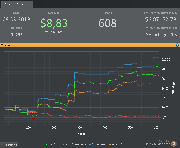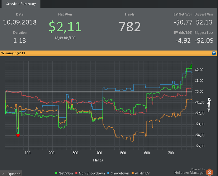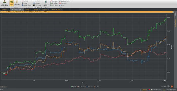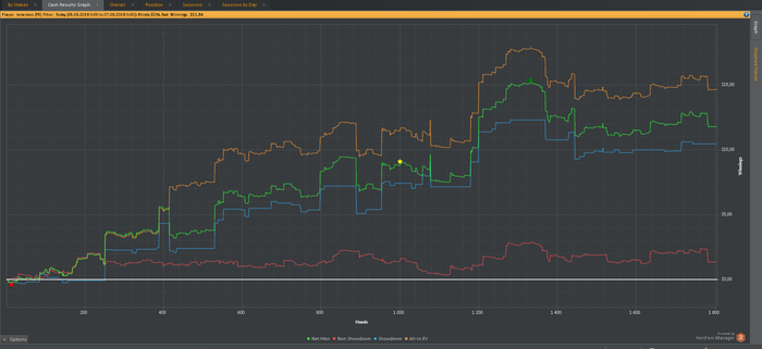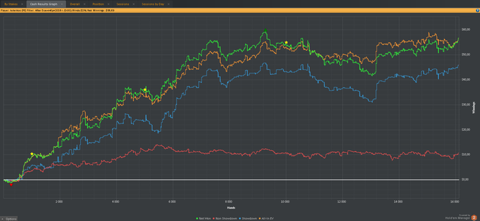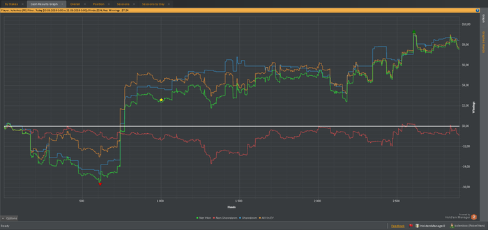 Также хотелось бы заметить, что в настоящий момент катаю только 2 стола и перезапускаю их при накоплении 180-200бб, поэтому об отыгрывании больших дистанций за короткий промежуток времени речь не идет. Да и некуда торопиться