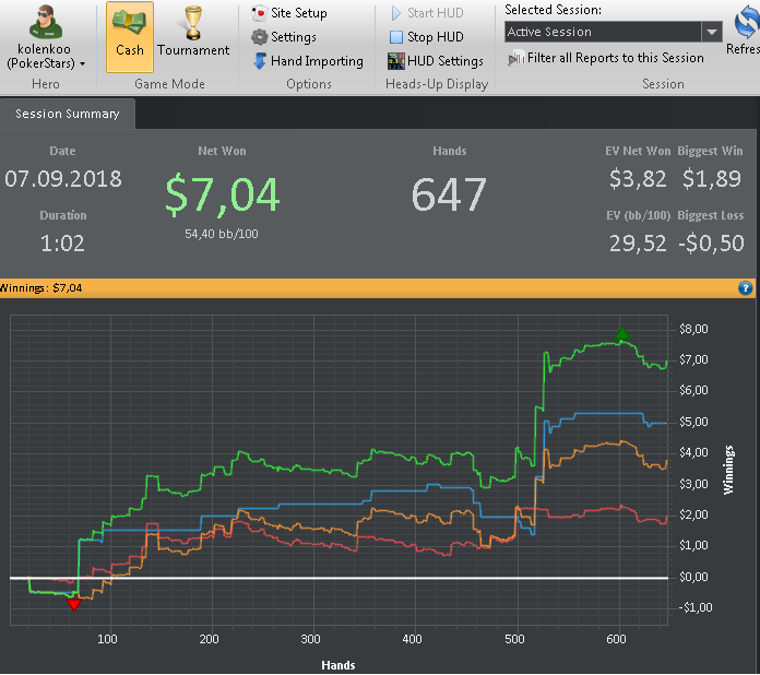VPPV666j @ 6.9.2018 Также хотелось бы заметить, что в настоящий момент катаю только 2 стола и перезапускаю их при накоплении 180-200бб, поэтому об отыгрывании больших дистанций за короткий промежуток времени речь не идет. Да и некуда торопиться