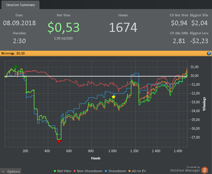 Несмотря на небольшой профит, карты сегодня ложились не той стороной, и из ультра велью рук на флопе превращались в такие.. с которыми невозможно даже блефкетчить: