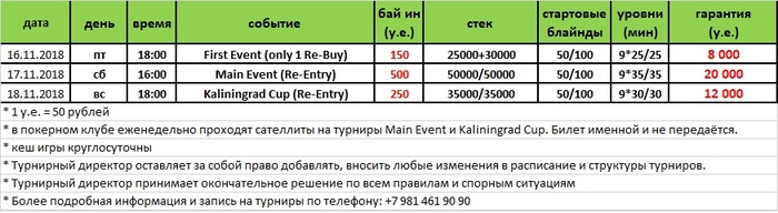 Мы рады Вам сообщить, что с 16-18 ноября пройдёт уже 3й по счёту покерный чемпионат Калининградской области!
