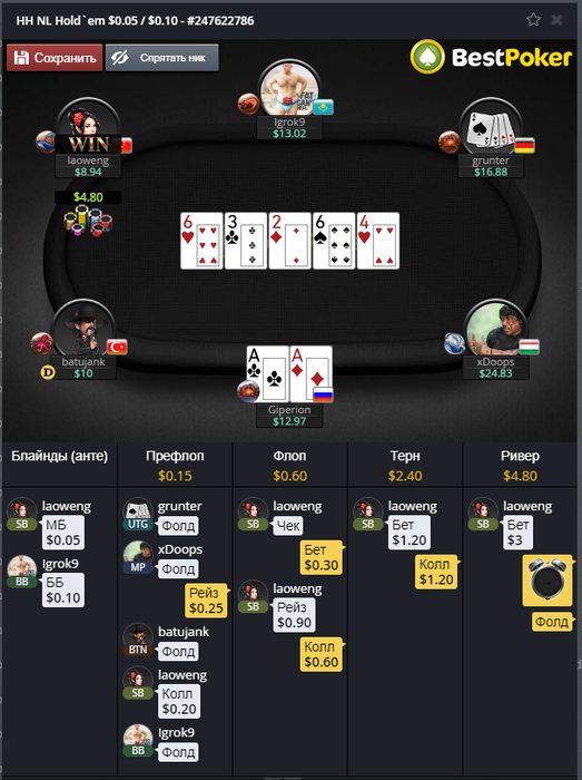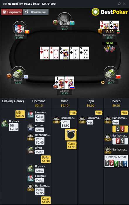 Первая раздача, интересно ваше мнение, не слишком ли нитово сыграно. По мне блефов слишком мало, а сайзинг уж слишком говорящий.