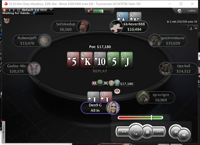 Poker Stars, $2.94 Buy-in (40/80 blinds, 12 ante) No Limit Hold'em Tournament, 9 Players Poker Tools Powered By Holdem Manager - The Ultimate Poker Software Suite.