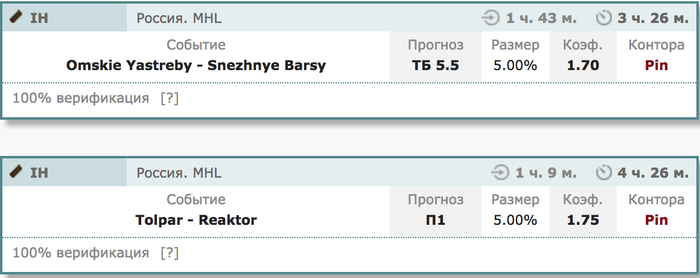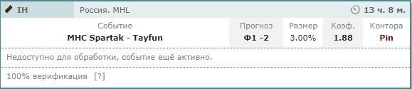 10) Лига - Россия. ВХЛ Событие - ХК Рубин Тюмень - Горняк Учалы Прогноз - Фора -1.5 Тюмень Коэф. 1.8 . - 3%