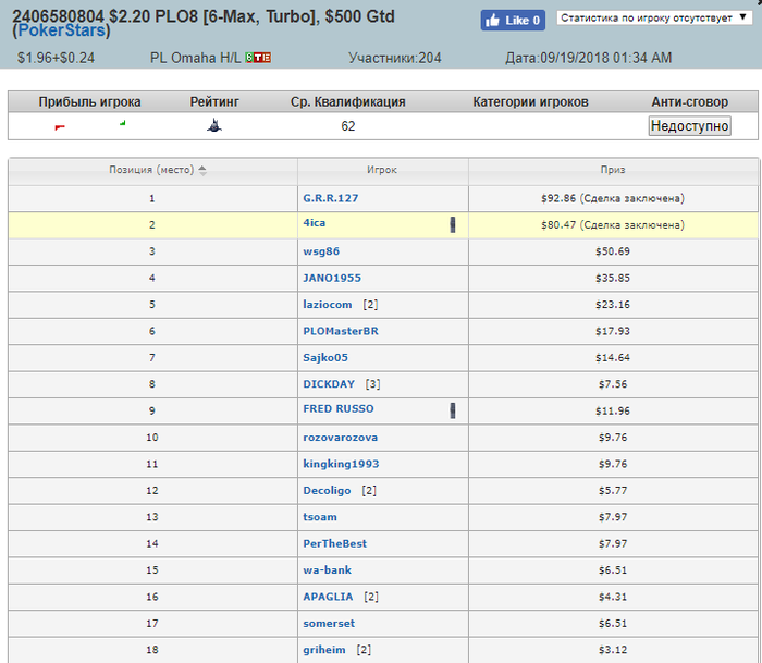После долгой дисперсии - появились приятные результаты пока в омахе, но тоже результаты... 3 раза брали в этой омахе топ5 в этот раз уже дошли до топ2)