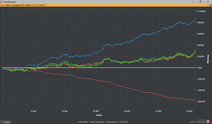 Прикинул также значения cbet success. На данный момент они у меня составляют: F 43,1% | T 35.8% | R 39.0% | Они должны, соответственно, увеличиваться при правильной постановке игры. Посмотрим как они изменятся в дальнейшем.