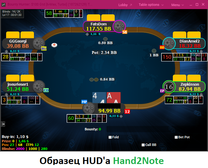 Полная настройка СОФТА. Настройка статистики, тегов. Под ваши лимиты и ваш уровень игры. Hand2Note / HoldemManager 2-3 / PokerTracker4 / PartyCaption / StarsCaption / 888Caption Цены минимальные, оплата Qiwi / Сбербанк Онлайн / PokerStars (переводом) / PartyPoker (Переводом) Делаю все быстро. Созваниваемся в Skype , соединяемся в TeamViever , и при вас делаю всю настройку, с объяснением всех статов. Так же дальнейшее курирование Вас с вашим софтом. (БЕСПЛАТНО) Дизайн HUD делаю любой, какой будет удобен заказчику. ! На скрине один из образцов. Связь: Skype KOKCEP (Аватарка I'm all In) vk - https://vk.com/b2fkokcep