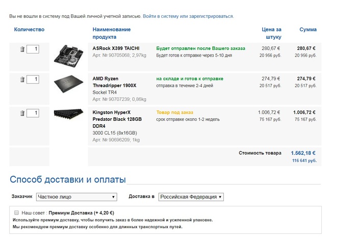 Сейчас снова пытаюсь собрать, собственно за процессор и за мать+память+ссд + мышь я уже заплатил. Но памяти на КУ не оказалось в наличии, поэтому заказ автоматически отменился, а проц висел больше недели, я его отменил в итоге. Тем более что за эту неделю стал сомневаться в нужной мне конфигурации. Так что можно сказать "пронесло"