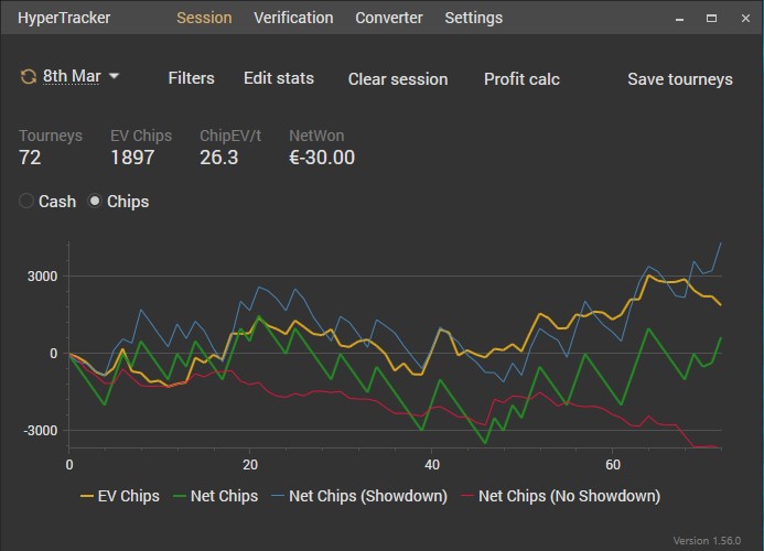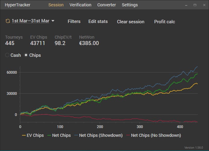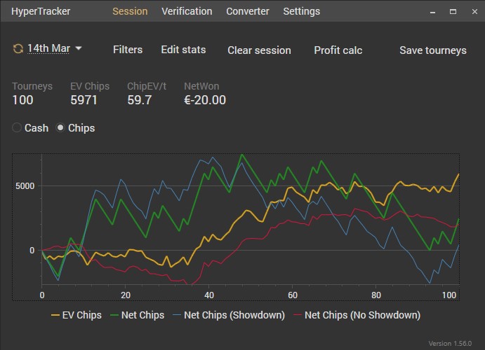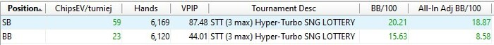 Какое то время еще барахтался в МТТ дисциплине (до конца лета 2019). Понял, что совершенно не вывожу тренировки, в том плане, что слишком ленив и не понимаю всех глубин расчетов. Простого расчета и заучивания чартов мне не приносило покоя. Слишком глуп я пока в софтах и чтобы окончательно себя не зарыть с дисперсией МТТ решил уйти обратно в Spin and Go дисциплину, где короткие стеки и 3 позиции. Смотрел стрим Tylera недавно, где он говорил, что при обучении своей команды МТТ он начинает ознакомление с софтом именно с позиций BB SB BU и это мне дало лишний раз подтверждение, что я сделал плюсовый шаг назад, где смогу углубиться и немного познать мысли машины. Скажу, что раньше тоже были попытки, где ты садишься за серверный софт и начинаешь понемногу что то делать, нажимать, рассматривать. Но дисциплина спинов 2016-17 годов была "упрощенной". В то время достаточно было иметь знаний префлоп чартов, чтобы иметь отличный винрейт на низких лимитах, да и рейкбек еще был неплохим. На жизнь хватало. И тому же симплу я в итогде уделял пару часов в месяц и то на тренировках. ...сейчас всё координально изменилось и рост по лимитам идет несомненно рядом с кропотливым трудом теории и просчетов. Чего у меня нету. Смотрю в просчет и вижу фигу. Тупой. Надо разбираться.
