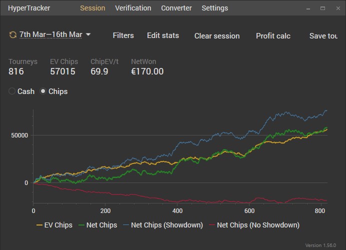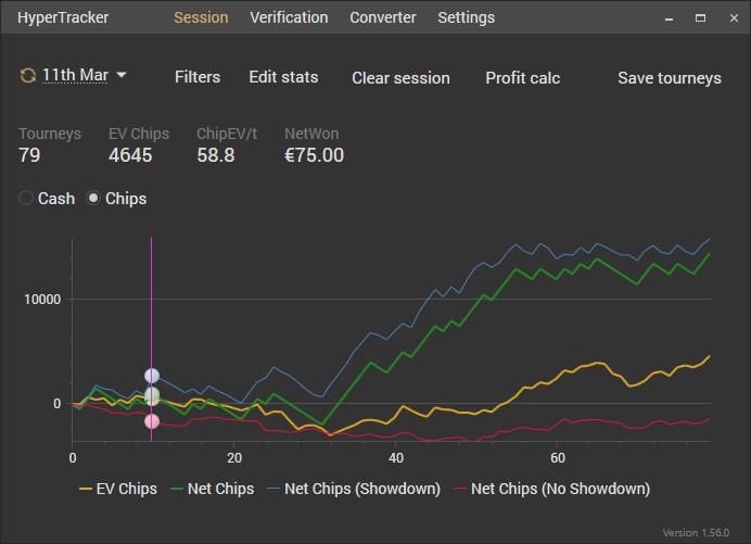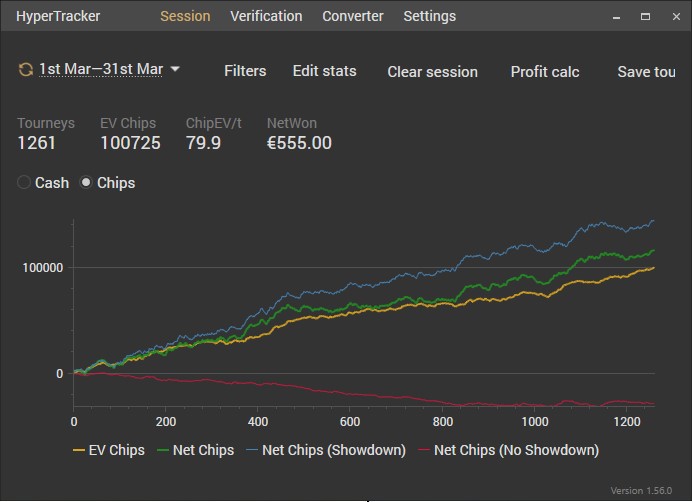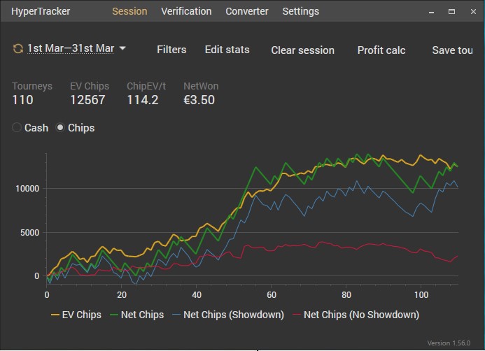 Для истории загрузил графики Spin'and'Go, которые я играл последние год с небольшим. Сейчас я их оставил и перешел в МТТ, так как почувствовал что не могу уже вывозить бешеную динамику. Фокусировка со временем стареет. Это я кстати заметил и в играх шутерах. Уже совсем не тот скилл - полное днище Дистанция разбросана (месяцами мог не играть изза переездов, нерабочей техники и прочих форс мажорных ситуаций и лени. Так же "hours" - неактуален изза заполнения 1hour после каждой сессии).