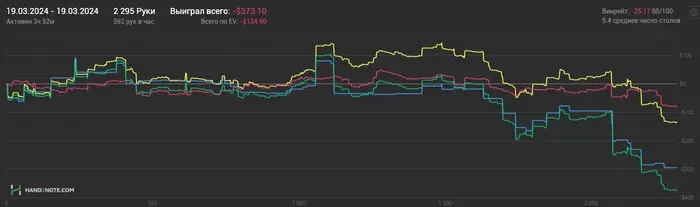 Наконец дали сыграть аповую сессию. Префлоп кулера были, но получалось отскакивать по РИТу, ну и фиши сегодня лютовали