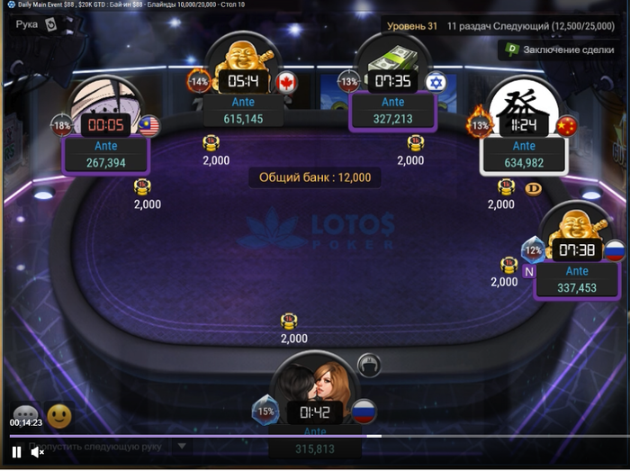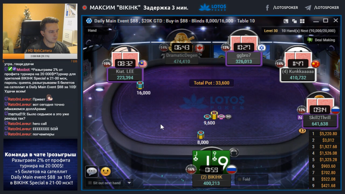 Всем салют! Играю и стримлю турниры на LotosPoker(сеть GG). Кто-то может видел (отмечаюсь на главной ГТ периодически).