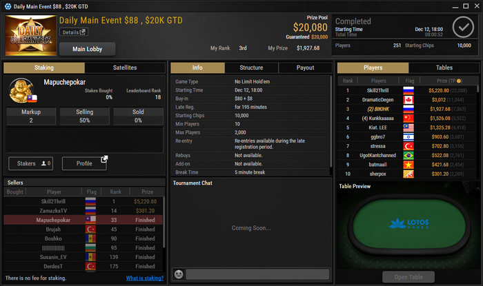 12 декабря 2018 звезды наконец сложились, и я вылез на финалку Daily Main Event $88 20k GTD. Играл собрано, и всё бы ничего, но