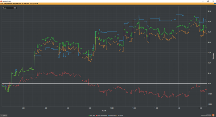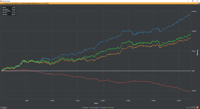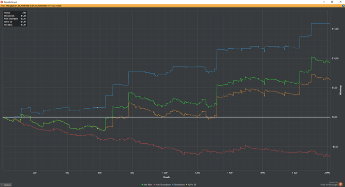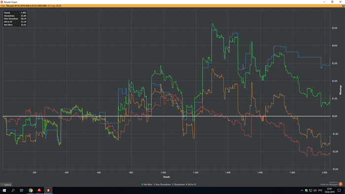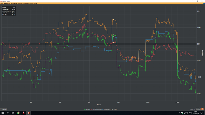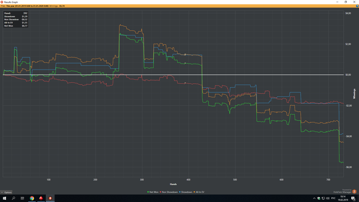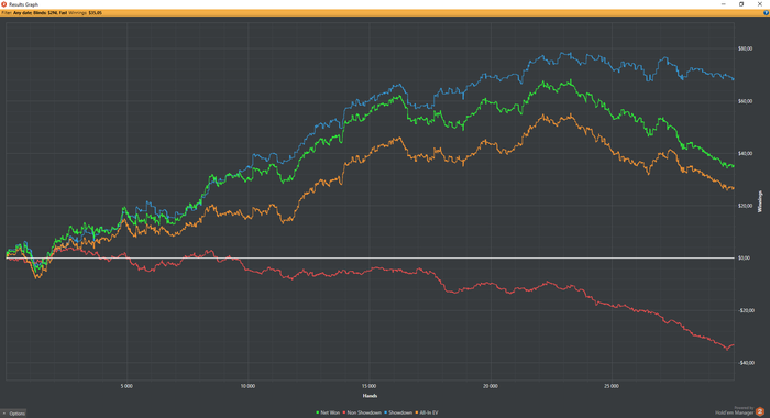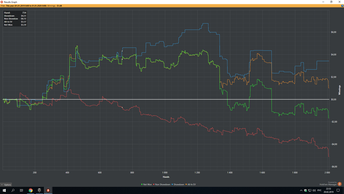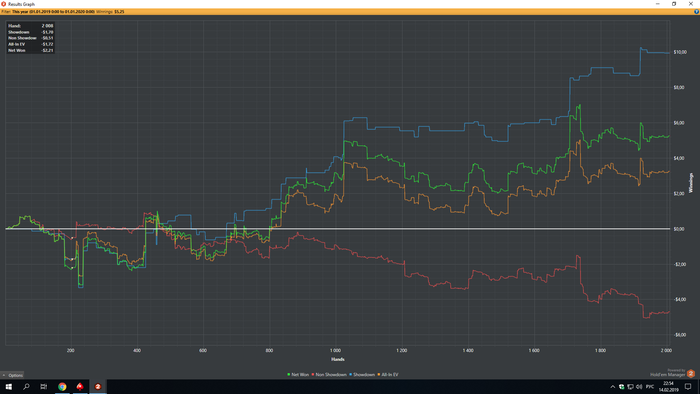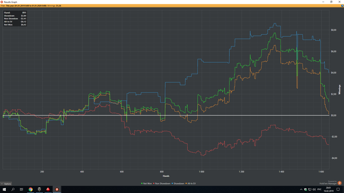 Apathyone, Даунстрик лично у меня, когда синяя линия, как в графике около нуля или в минусе, так как раздают сеты в стриты или фулы в каре. Сегодня были 3 такие раздачи из них скорее всего переиграл руку 1 раз. Другие 2 кулера сеты в стриты где доска такая, что их можно легко положить на пару или на две пары.