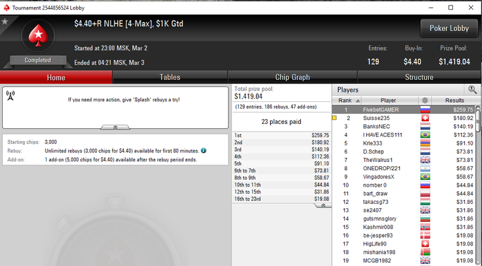 Изначально планировал играть минимум в 1.5-2 раза дольше чем сейчас ,как писал выше, в приоритет ставил турниры где больше раздач ( 2максы,3максы ,4максы ) на самом деле, на данный момент их меньше чем могло быть ,понимая что марафон никому не интересен, мне становиться безумно лень играть,выкладываюсь максимум на 60% .