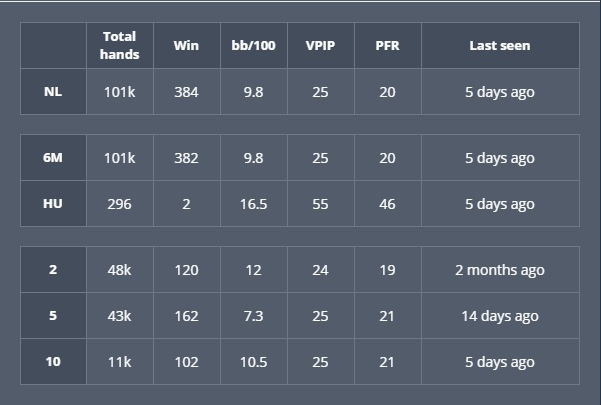 О себе сказать ничего не могу , играю в покер где-то месяцев 5 , месяца 2 как начал работать над игрой на постоянной основе , вот статистика с статнейма , но на ней нет больше половины рук.
