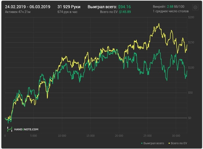 играл не очень много последние дни, выборка пока не большая. краткие отчёты буду выкладывать в бб, отдельно по лимитам буду анализировать на более крупной дистанции, начиная с 50-70к рук.
