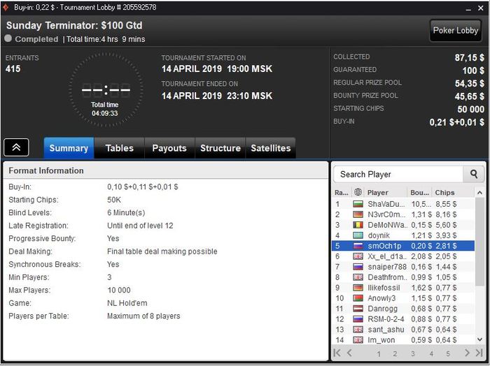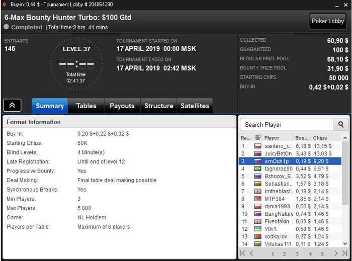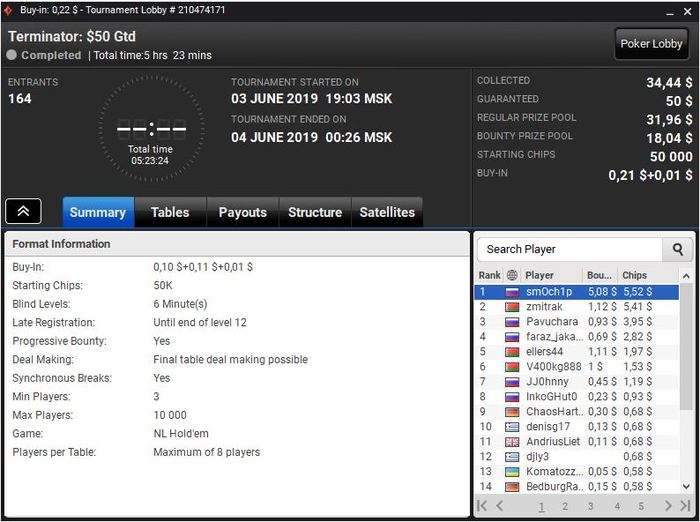 Эш, спасибо за поддержку и комментарий. К сатам тоже отношусь аккуратно, так как на мой взгляд, это своеобразный обман банкролла и под них нужен очень мощный бр, больше чем даже под турбо мтт. Поэтому играть их стараюсь только выборочно и желательно через фриролы. Учитывая то, как шатает в мтт, если не отыгрывать их достаточно много, саты - тема еще более жёсткая.