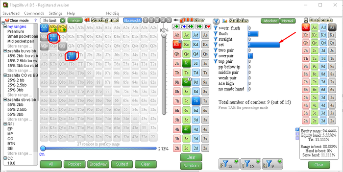 Даже не буду спрашивать, на кой ты коллишь 4беты с АА, так что и разбирать не буду...ну хотя ладно, в диапазоне 4 бета оппа (адекватного) блокеры и QQ+, еще и не все оппы играют 4 бет с QQ и АК но это мелочи, что ты хочешь увидеть у оппа, готового тут выставиться на терне кроме сета, если это блеф 4бет? Руки хуже КК ты тут не увидишь почти никогда, можешь изредка увидеть на этой доске АQs или АКs, которым тут тоже ставить нет резона, если только оллин, зачем ты приводишь статы, на которые в данном споте внимания обращать вообще не надо? Где 4бет оппа?