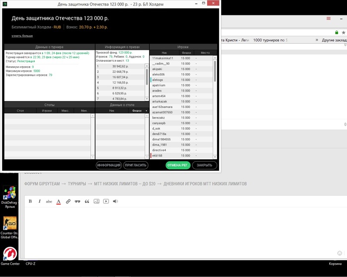 Всем привет!меня зовут Виталий,мне 29 лет,на ДТ в основном сидел в режиме onlyread, С покером познакомился в 2010г.Значительных побед не было,все что выигрывалось позже сливалось. Играю по чуйке и считаю себя любителем(но это не точно) Хочу доказать себе что смогу раскрутиться с 10-10000$,и иметь в будущем доход от покера. Информацию по работе над игрой буду брать с открытых источников-обучающие видео,статьи Начну с 3-х румов,позже добавлю и другие,катать буду по 3-4 часа в день,фрихи,мтт,мтснг. Банкролл менеджмент-100 БИ на лимит, и естественно при подьеме ,он будет консервативнее.