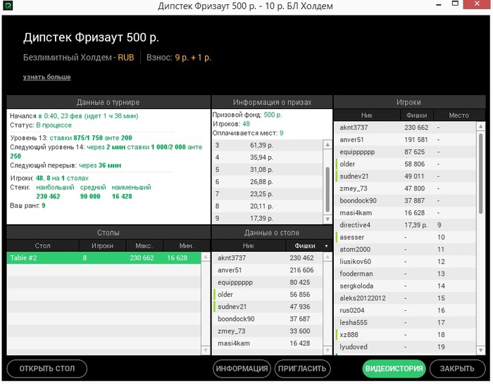 Отчет за прошедшие несколько дней: Покеркинг- выиграл 2 билета на venom step 2, обменял очки на деньги и + 0,14. На 888 Выиграл билет за 5$ и зарегался в бласт покер - занял 2 место,немного все же нажил +1,53 Еще на покердом проходят инстаграм и телеграм фрибай , подрублю к марафону и его.
