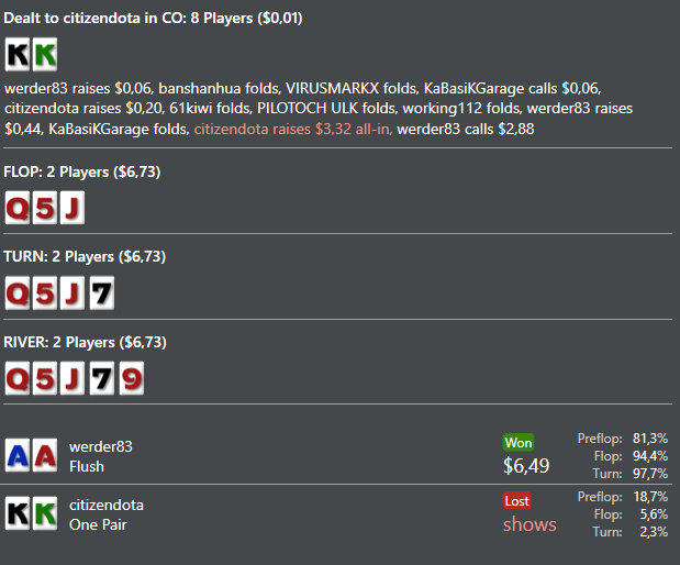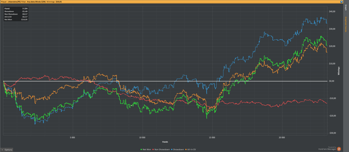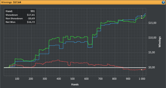 johnpsg, Привет! Да у меня по начальному графику в первом посте видно что 20 столов я не вывозил)))) Как только сократил кол-во столов с 20 до 9 сразу же пошел профит. И я еще понял что 6макс у меня гораздо лучше идет чем 9макс. Для сравнения на 9 макс я имел 5-7 бб/100, на 6макс около 14бб/100, конечно цифры не особо объективные, ибо дистанция на 6макс маленькая, но посмотрим что будет... Ты сейчас на каких лимитах играешь?