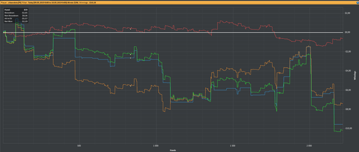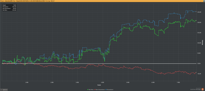 Денек выдался продуктивным, получилось откатать почти 8к рук. БР = 58,5$ Итак, что имеем: