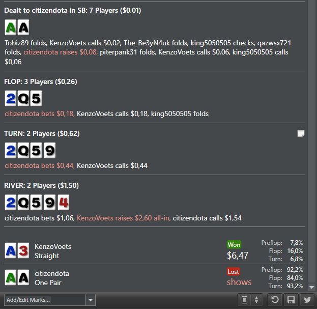 Всем привет Меня зовут Александр, мне 29 лет. В покер играю очень давно, с 2012 года (ну как играю, знаю правила ) За это время я успел пожениться, родить ребенка, построить собственный бизнес, но играть плюсово в покер так и не научился А ведь когда-то я мечтал зарабатывать покером на жизнь, т.к. эта игра мне очень нравилась (а как говориться любимая работа - это высокооплачиваемое хобби). Итак, к чему я это все пишу. Сейчас у меня появилось свободное время и я решил свою детско-юношескую мечту во платить в реальность. Моя цель это потихоньку сколотить БР 1000$ до конца лета. Этот бложик это способ найти людей единомышленников, товарищей, друзей. Играть планирую нл2 на PokerStars (БР = 72,03$), с переходом на последующие лимиты если не сольюсь Удачи мне. Буду рад если будете забегать Мой график НЛ2 (строго не судите, я жудкий лудоман):