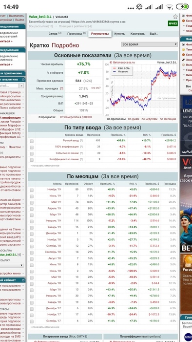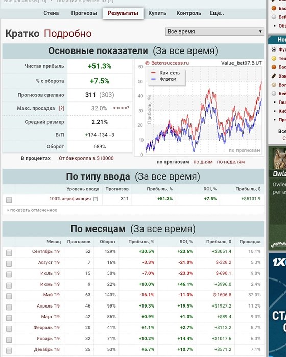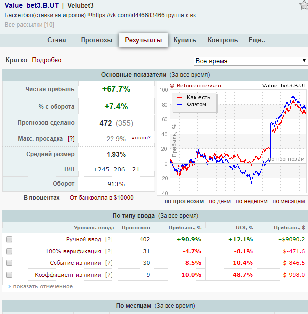 Ну что новый баскетбольный сезон начался кто хочет присоединиться к рассылке по ставкам в перерыве матча цена 2000 т.р. 35 ставок ( дистанция в 700 ставок была пройдена в открытом доступе общий рой 6% , не все ставки попали в рассылку, так как бетон их сделал отдельной графой, а старые результаты было не перекинуть, поэтому полной картины не отображает https://www.betonsuccess.ru/sub/86913/Value_bet07.B.UT/stats/all/