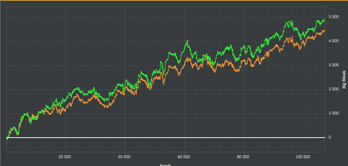 Вот думаю , как считать лучше отрезки времени для отчетов: по неделям или декадам 10 дневкам. Бр по всем меркам агро агро. Но я рискну. Нл50 катать пока не буду дабы не нарушать свой психоэмоциональный фон итак подорванный болячками. После выписки из больницы планирую нехило погриндить. Посталю цель 75ч (4500 мин)до конца месяца. Целей по профиту ставить не могу тк все не предсказуемо. Какой то лимит получше какой то похуже. Примерно 800-1000 рук час получается. Вот и посмотрим что из этого выйдет . Конечный показатели ,которые меня интересуют , это соответсвенно ,часы в игре и бакс/час. Показатель винрейта всегда считал непоказательным. Кстати, есть еще одно наблюдение что чем ниже лимит тем сложнее он бьется, это происходит в связи с некоторыми факторами индивидуально, но это правда. Пора уже становиться сильными и делать дела! Оремуар
