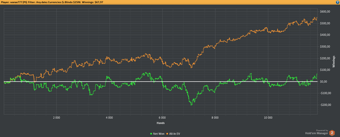 Ну вот впринципе и все! За месяц пробежался по лимитам начиная с нл2 . Остановился на нл10-16-25 . Подключать начал нл50 , под уважаемого. Играю миксом несколько лимитов , что имхо дает максимальный профит. Пока немного приболел, но это временно. Что писать сюда , особо не решил еще. Просто может какие то мысли. Аривуар.