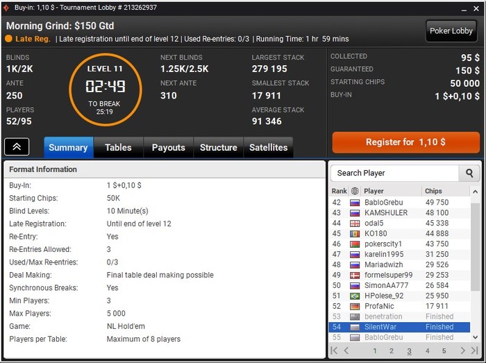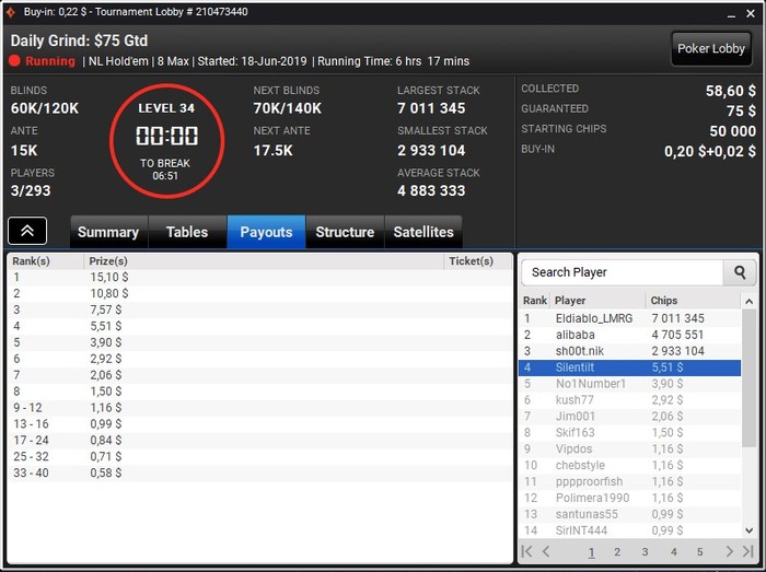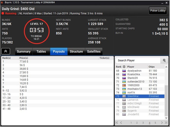 -10,54 В связи с переполохом со сменой ников удалось сегодня сыграть лишь один турнир: