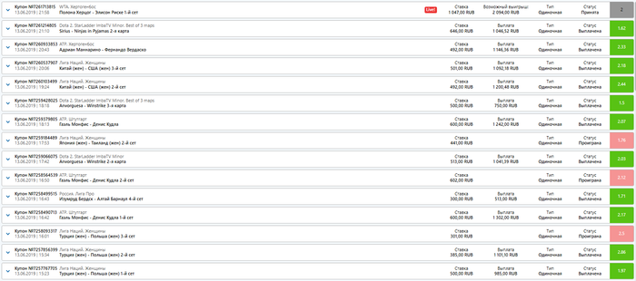 Могу выйти на связь в дискорде, телеграме, скайпе, смотря чем вы пользуетесь, и всё обговорить. Там же могу в режиме показа экрана показать историю переводов. Всё же история ставок дальше, чем месяц, не остается. Есть буквально небольшое кол-во скриншотов, все купоны пробиваются по номеру.