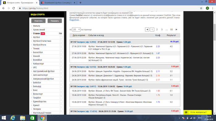 ставки, не большие, но с хорошим коэф, так, на дурочка. Мог поставить рубль (белорусский) под коэф 1000, экспресс. Потом один не заход, возмущался (верняк какой нибудь не зашёл).