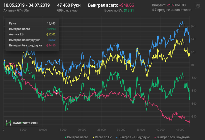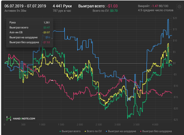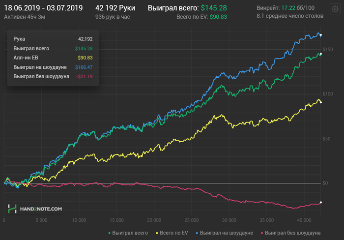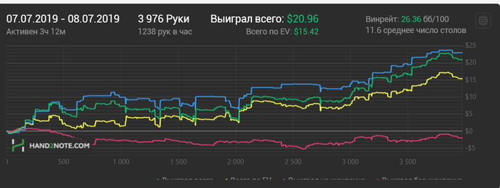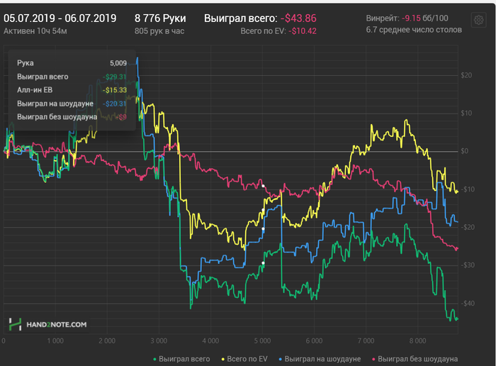 Пока на нл5 кулерит пиздец. Но ошибок стало намного меньше. За сегодня лишь 1 критическая и пара не очень хороших мувов. Разметил немного поляну, пора начать селектить. Слишком уж привык, что на нл2 каждый стол - это аквариум. Продолжаем совершенствоваться. график за сегодня