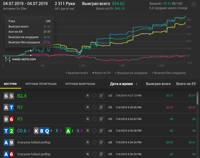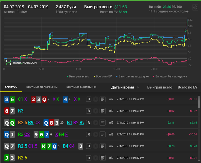 Hero showed , and lost with a pair of Nines axi05 showed , and won ($4.10) with a full house, Aces full of Nines axi05 won $4.10 (Rake: $0.15) Я уже просто боюсь заходить на нл5, мне плохо становится от местной фауны. Через 5 минут игры в этой палате я уже не контролирую свою игру. один из представителей видов с 3бетом 20 Converting hands till the cows come home PokerStars No-Limit Hold'em $0.02/$0.05 - 6 players