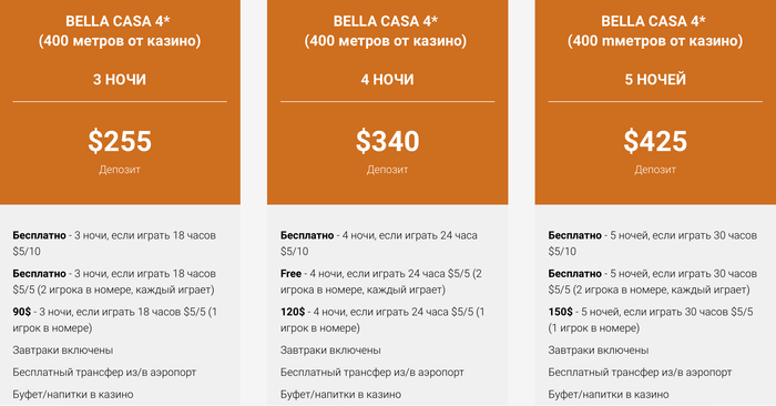 Мы разработали пакеты для игроков на 3, 4 и 5 ночей, с бесплатным проживанием или дисконтом при условии наигрыша в кеш во время фестиваля.