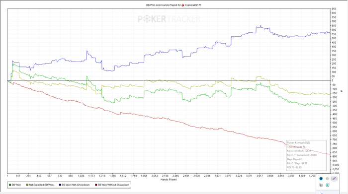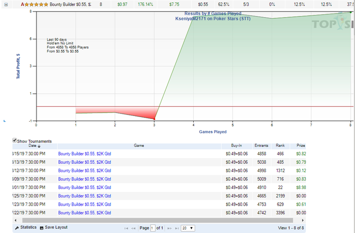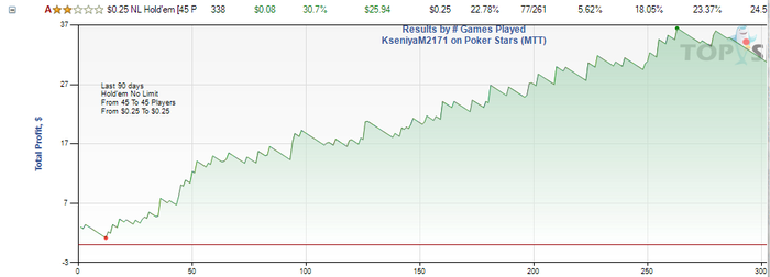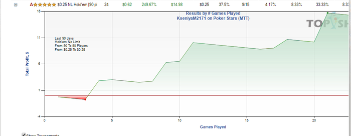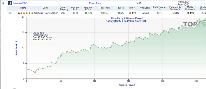Привет. Личка еще закрыта, могу пояснить здесь, играла много мтт не по бру, сейчас решила взяться за ум и отыграть дистанцию только в мтснг, поднимаясь по лимитам и не миксуя с мтт... Ну и если в шаркскопе поставить фильтры только на 0.25$ и 0.55$, то ничего в разрез не будет идти Вот весь график за 2019 год со всеми мтт и гипер турбо снг...