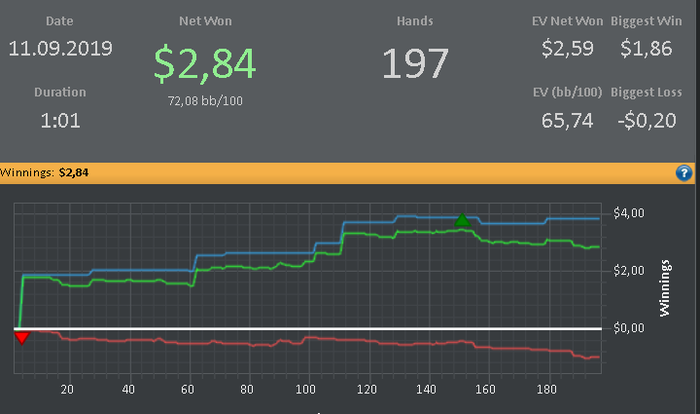 Сегодня отыграл почти 1к руку, впервые открыл 3 стола, к сожалению вышел в 0. Было очень много переездов и довозов со стороны соперников, завтра скину раздачи