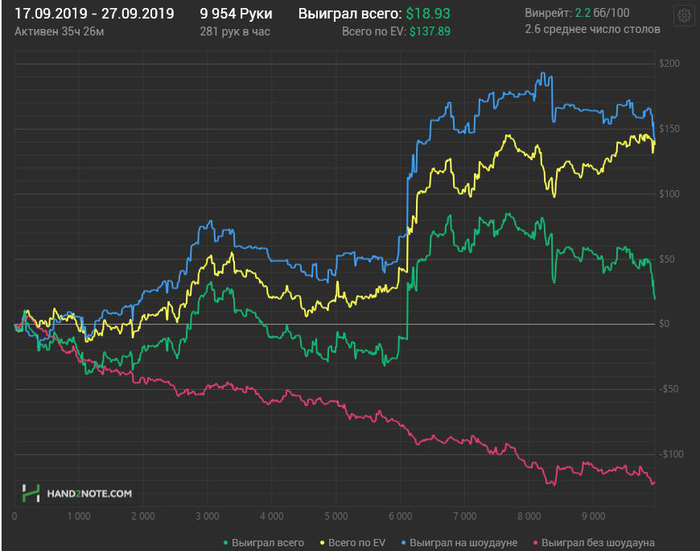 VsemPrivet. Создаю дневник, т.к. верю, что это поможет мне перестать быть децепом в "манименеджменте" и финансах. Вел дневник, но в конце лета решил съездить с кампанией на море, для чего вывел бр.. В итоге бОльшую часть средств слил на апгрейд девайсов и всякую хню. Задумываться о бесполезной трате средств начал еще давно.. но осознание пришло только сейчас, когда френд заметил в сбере вкладку "Анализ финансов".. Заглянув туда я заметил, что каждый месяц(только по карте сбера), не считая прочих трат, по 15-20к уходит на "бесполезную" еду в рестиках и т.д.. А если учитывать, что я не работаю и за коммуналку и домашнее питание я плачу ровно Zero, т.к. живу не один, то можно сделать вывод, что в "денежных" делах я дол*б. Теперь о покере: Т.к. на аккаунте было что-то около 0 и начинать играть с нл2 на тот момент я не хотел, решил обратиться к бекеру (спасибо тебе) и набить бр, начиная с рег. столов 10ки. Закончился мой бекинг примерно так: