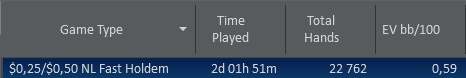 Что-то я погорячился с 25к рук в неделю со старта. Когда-то играл 8 столов зум, но сейчас с непривычки и против незнакомых оппов даже на 3-4 столах все слишком быстро. Пока играю 2 стола, привыкаю к динамике, собираю статы. Первый отчет в конце месяца.