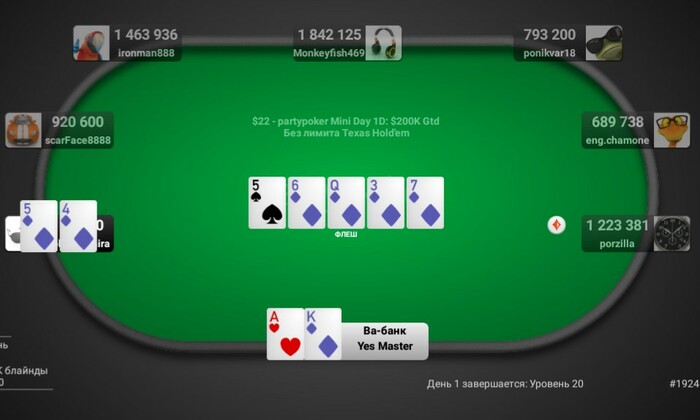 Я на сб, все до меня падают. Я рез 4бб опп колит, флоп бет 2/3 пота, терн бэт пот он колл, ривер чуть меньше пота опп мин-рейз я кол.