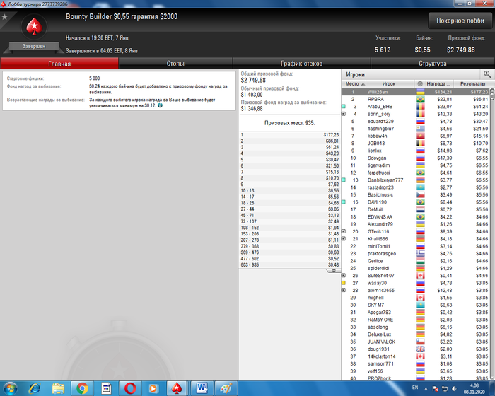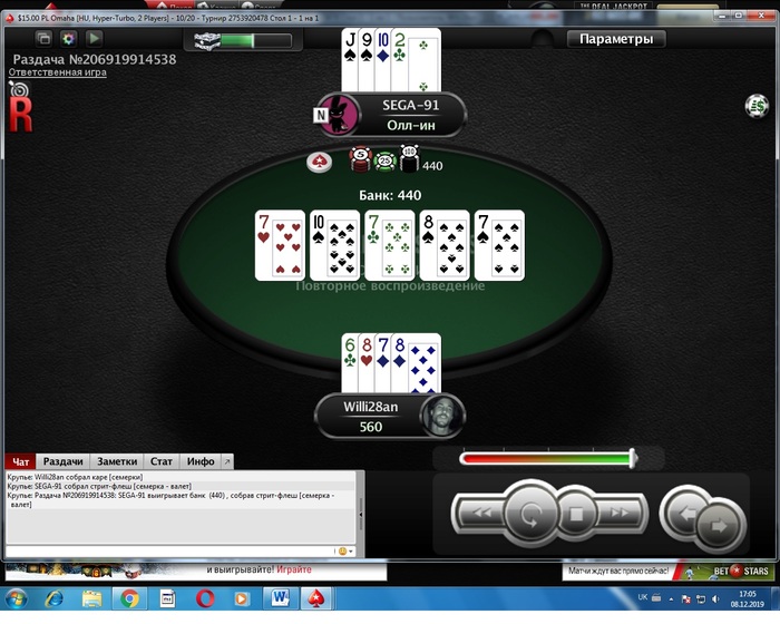 ,далее ушатывали в мтт,в спинах тоже не шло,в мтт в сатах это вообще боль,переоценил требования после вчерашнего дня сильно в сторону увеличения БРМ, такого ада я давно не испытывал,такое чувство что кто переключил тумблер на аккаунте,я спускался по лимитам хедзапа,но там тоже самое.В итоге получил щелчок по носу и по Бр,еще один показательный урок дисперсионнности покера, и то что никогда не можно расслабляться играя. Но все равно по большому счету виноват я сам(залудил в Мтт сильно не по банкролу) Но имеем то что имеем День 4 Бр на конец дня 8,03 888 покер 0,03 Сashout-0. Сегодня играем снова 1,5 Plo HU SNG Turbo и только 1,5 до банкрола 35 $.