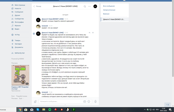 "Привет! в общем, мы херней не занимаемся, есть тема, мы втроем- старыми друзьями уже месяца два как высекли одну тему в покере,