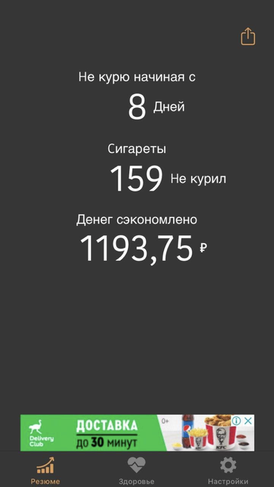 Что у меня изменилось за 8 дней без сигарет?... Изменилось многое, муки отвыкания значительно ослабли. Физические недомогания: кашель, головокружения, уже почти прошли и не доставляют особых хлопот. Все чаще стал ощущать чувство бодрости и прилива сил. Много энергии, но управлять ей пока что все еще тяжеловато,мысли постоянно приследуют покурить бы. Конечно, уже не так как в первые дни, когда и 5 минут не могло пройти, чтобы я не подумал о сигарете и не расстроился по поводу ее отсутствия, но все же проблема есть. Мысли приходят реже и, как правило, связаны с определенными событиями. Просто ужас как плотно вошла эта привычка в мою жизнь. Хорошо, что на тот момент я уже перечитал много информации по вопросу бросания курить, ознакомился благодаря Интернету с опытом других людей избавившихся от этой привычки и был готов к подобному развитию событий. Я читал о возможности подобных приступов тяги к сигаретам, а так же и о том, что так будет не всегда и со временем эти ощущения пройдут. Думаю, это знание, и понимание ситуации помогло мне не закурить. Не стоит бояться подобных ситуаций, а наоборот чем чаще они будут появляться, и чем чаще в них вы будете преодолевать тягу к сигаретам, тем быстрее привычка курить заменится на привычку получать удовольствие от рыбалки, шашлыков или чего бы там не было без курева. Дискомфорт от отсутствия сигарет в первые дни пути к жизни без никотина — лишь временное явление, которое пройдет со временем, как и физическая ломка, так что не стоит поддаваться унынию, а нужно двигаться вперед к счастливой жизни без никотиновой зависимости. Так же из Интернета я понял одну прекрасную мысль. Не нужно считать себя несчастным и бедным, лишенным соски , а надо считать себя счастливым, сильным, идущим к правильной цели человеком, которого впереди ждут 10-ки плюсов, да просто уважение к самому себе за то, что ты смог бросить курить. Нужно радоваться тому, что ты не куришь, а не расстраиваться из-за того, что у тебя забрали сигареты. Оказывается все так просто.